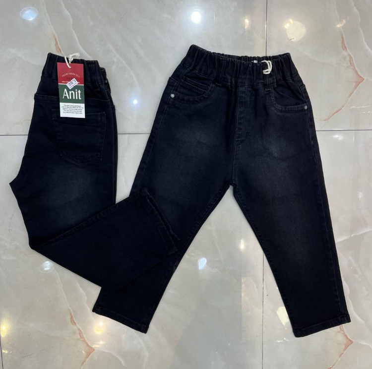 شلوار جین کمرکش با شست جذاب ذغالی بدون رنگ رفت و آبرفت از سایز 3 تا 7 سال می باشد